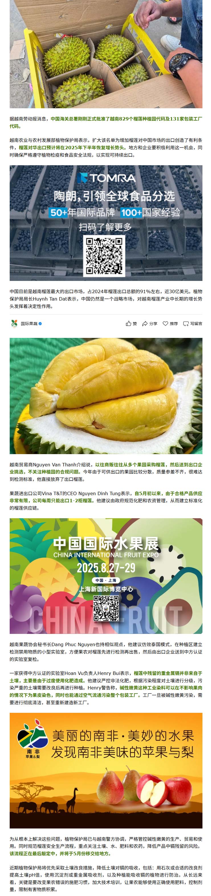 海关总署批准960家种植园+工厂,越南榴莲有望恢复增长势头!